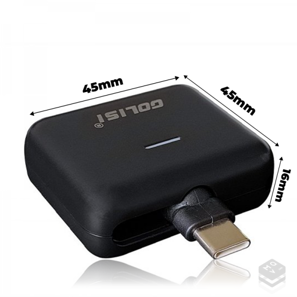It’s a portable external battery with a 1600 mAh capacity designed to recharge e‑cigarettes and other USB devices. It doesn’t require complex adapters and delivers efficient power thanks to its USB‑C 2 A interface.