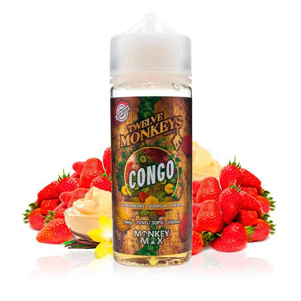Eliquid Twelve Monkeys Congo Cream 100ml is a delicious recipe that incorporates strawberry, vanilla and cream, the perfect combination for those with a sweet tooth. Experience the taste of this unique treasure!