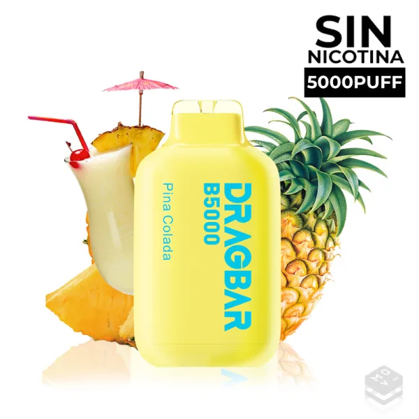 NICOTINE FREE Disposable Vaper Dragbar B5000 Piña Colada by Zovoo. One of the best tasting drinks par excellence, where you can find the nuances of pineapple and coconut.