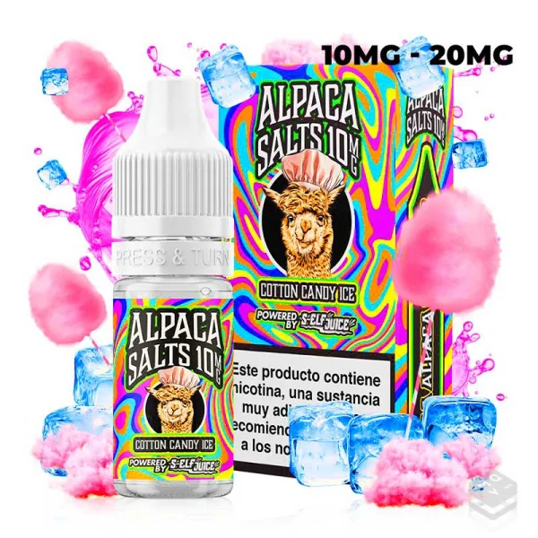 Cotton Candy Ice 10ml - Alpaca Salts are e-liquids formulated with nicotine salts that offer a sweet and refreshing candyfloss flavour, ideal for those looking for a unique and satisfying vape experience.