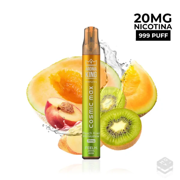 The Aroma King Cosmic Max Peach Kiwi Honeydew Nicotine Disposable Vaper with Nicotine is available for a price of €7.90. This affordable and accessible option makes it an attractive choice for both new and experienced vapers. You can easily purchase it from the online shop www.masquevapor.com or at their physical shops, giving you flexibility in your purchase.