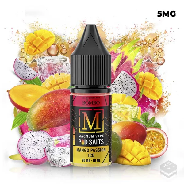 Nicotine Salts Mango Passion Ice Magnum Pod Salts 10ml, this new vape brand comes from the hand of Bombo E Liquids where they offer us a series of e liquids of vape or e juice for your vape atomizer in which predominates an exquisite sweetness of fresh squeezed fruits. Magnum Pod Salts, the brand of e-liquids that the whole world falls in love with.