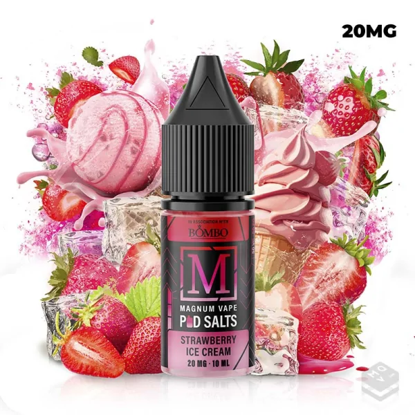 Nicotine Salts Strawberry Ice Cream Magnum Pod Salts 10ml, this new vape brand comes from the hand of Bombo E Liquids where they offer us a series of e liquids of vape or e juice for your vape atomizer in which predominates an exquisite sweetness of fresh squeezed fruits. Magnum Pod Salts, the brand of e-liquids that the whole world falls in love with.