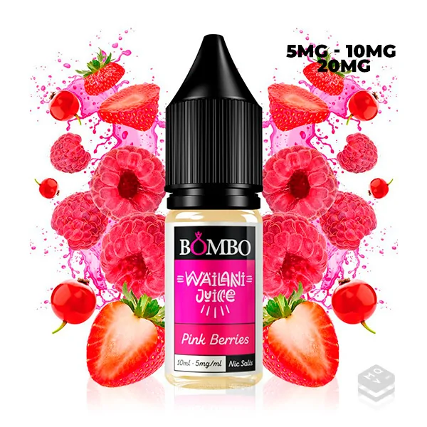 PINK BERRIES WAILANI JUICE BY BOMBO E LIQUID 10ML Wailani Juice's Pink Berries nicotine salts e-liquid tastes like a fruity symphony where strawberry and raspberry merge creating a heavenly flavor that awakens the senses.