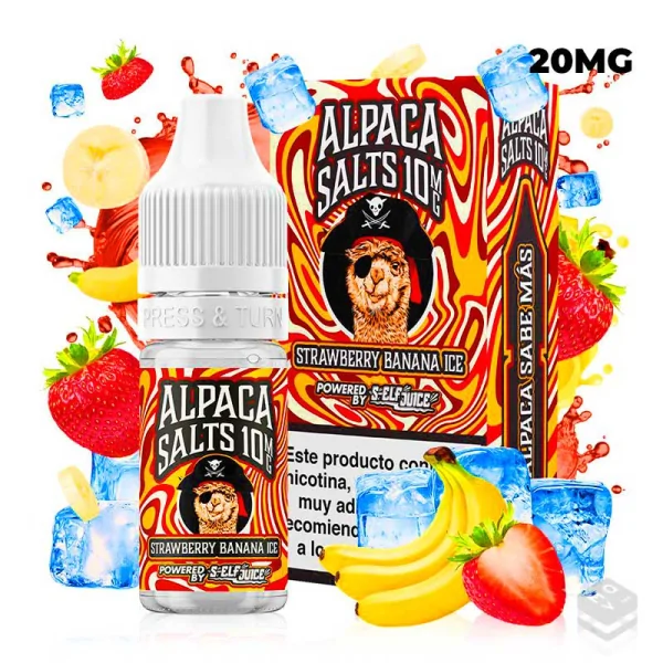 - Intense Strawberry and Banana Flavour: Alpaca Salts' Strawberry Banana Ice offers a very intense fruity flavour that combines the sweetness of freshly picked strawberries with the smoothness of banana, complemented by a refreshing hint of ice.