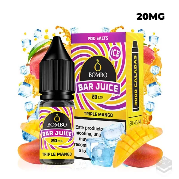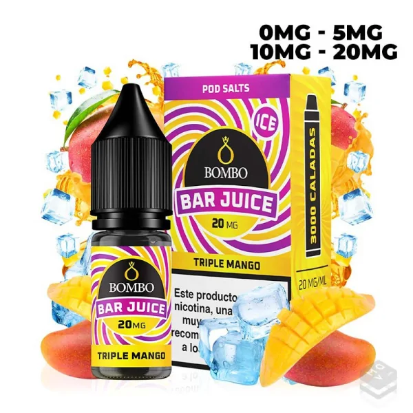 Triple Mango Ice liquid from Bar Juice Nic Salts by Bombo is a delicious and refreshing option for lovers of fruity flavours in the world of vaping. With a mango combination that stands out for its sweetness and freshness, this liquid offers an intense and satisfying vape experience.