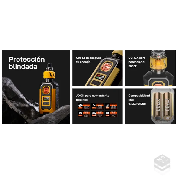 The Armour S Kit is powered by Vaporesso's AXON chip, which offers a wide range of modes for a professional vape experience. These modes include PULSE, ECO and TC-TI, allowing you to customise your vaping according to your preferences.