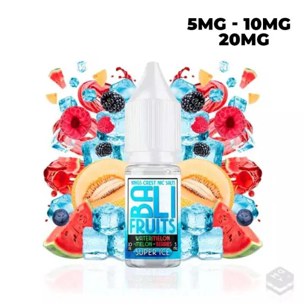 Watermelon, Melon, Berries Super Ice 10ml nicotine vape liquid from Bali Fruits Salts by Kings Crest offers an exquisite combination of watermelon, melon and wild berry flavours over an extra fresh background that will surprise you with every puff.