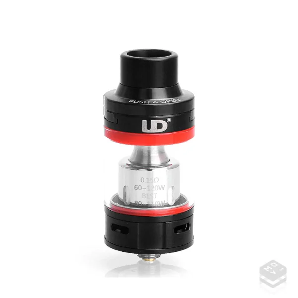 Finally, it integrates a retractable top filling mechanism for easy refilling and an adjustable airflow control at the base of the tank. The tank includes an 810 wide diameter drip tip.