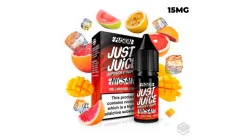 Fusion Blood Orange Mango On Ice de la marca Just Juice, son unas sales con una explosiva e impresionante mezcla de jugoso mango, cremosa fruta de la pasión y una ácida mezcla de naranja sanguina, cítricos y guayaba.