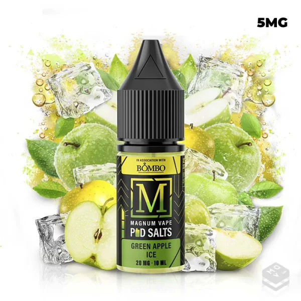 Sales De Nicotina Green Apple Ice Magnum Pod Salts 10ml, esta nueva gama de vapeo llega de la mano de Bombo E Liquids donde nos ofrecen una serie de E Liquids de vapeo o e juice en formato de sales de nicotina para tu pod de vapeo en los que predomina un exquisito dulzor de la fruta recién exprimida. Magnum Pod Salts, la marca de e-líquidos que enamora a todo el mundo.