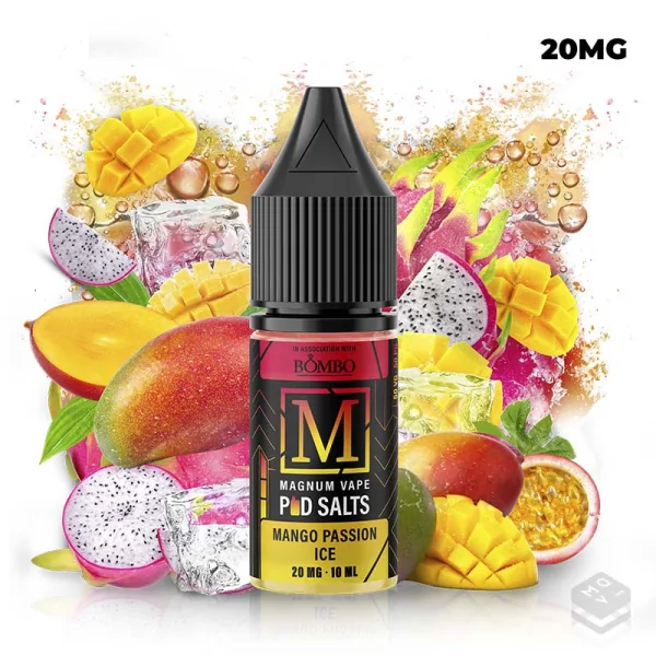 Sales De Nicotina Mango Passion Ice Magnum Pod Salts 10ml, esta nueva gama de vapeo llega de la mano de Bombo E Liquids donde nos ofrecen una serie de E Liquids de vapeo o E Juice en formato de sales de nicotina para tu pod de vapeo en los que predomina un exquisito dulzor de la fruta recién exprimida. Magnum Pod Salts, la marca de E-Liquids que enamora a todo el mundo.