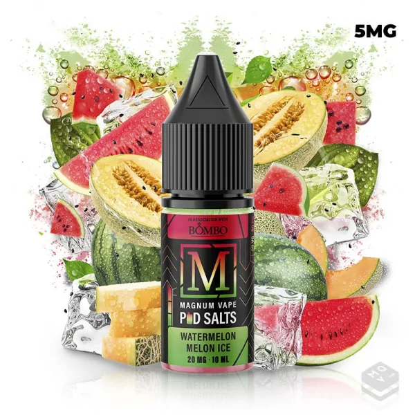Sales De Nicotina Watermelon Melon Magnum Pod Salts 10ml, esta nueva gama de vapeo llega de la mano de Bombo E Liquids donde nos ofrecen una serie de e liquids de vapeo o e juice en formato de sales de nicotina para tu pod de vapeo en los que predomina el exquisito sabor de la fruta recién exprimida. Magnum Pod Salts, la marca de e-líquidos que enamora a todo el mundo.