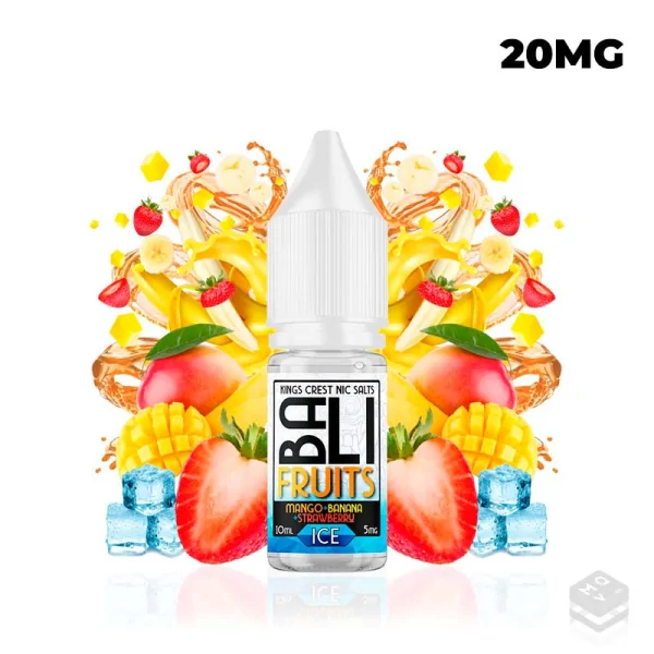 Mango, Banana y Strawberry Ice 10ml de Bali Fruits Salts by Kings Crest es una opción excepcional para aquellos que buscan una experiencia de vapeo tropical única y refrescante.