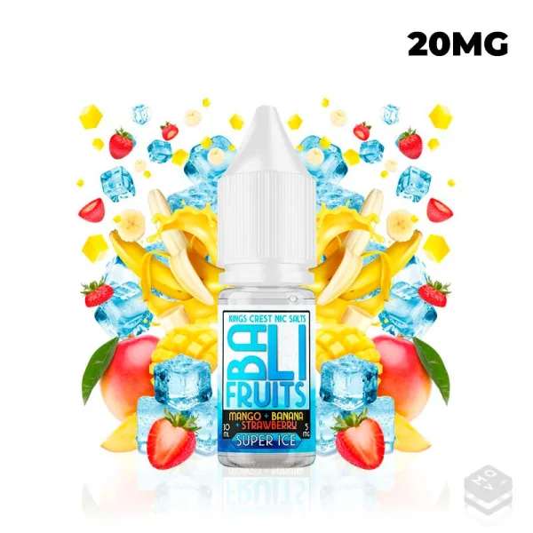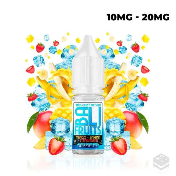 Mango, Banana, Strawberry y Super Ice 10ml de Bali Fruits Salts by Kings Crest es una excelente opción para aquellos que buscan una experiencia de vapeo fresca y llena de sabor, ofreciendo una combinación única de frutas tropicales con un toque extra de frescura.