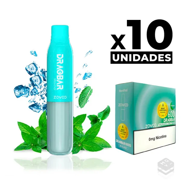 Pack 10 Vapers Desechables Dragbar 600 S Menthol Sin Nicotina Voopoo Zovoo
