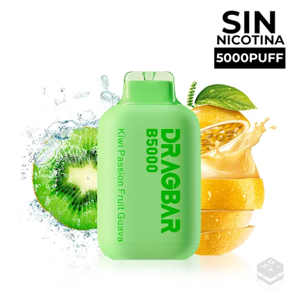 Vaper Desechable SIN NICOTINA Dragbar B5000 Kiwi Passion Fruit by Zovoo. Atrévete a disfrutar de los mejores matices del kiwi y la fruta de la pasión.