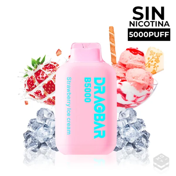 Vaper Desechable SIN NICOTINA Dragbar B5000 Strawberry Ice Cream by Zovoo. El mejor helado de fresa que provocará una sensación maravillosa en tu paladar desde la primera calada.