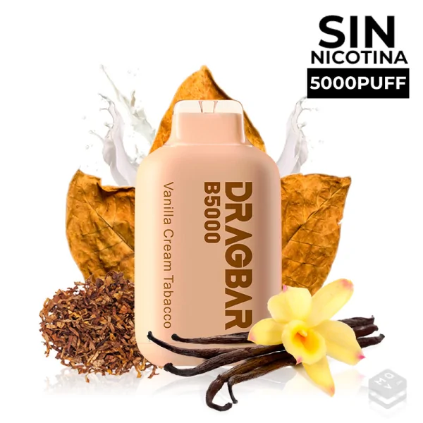 Vaper Desechable SIN NICOTINA Dragbar B5000 Vanilla Cream Tabacco by Zovoo. Atrévete a disfrutar de la mejor sensación gracias a los matices aportados por las mejores hojas de tabaco.