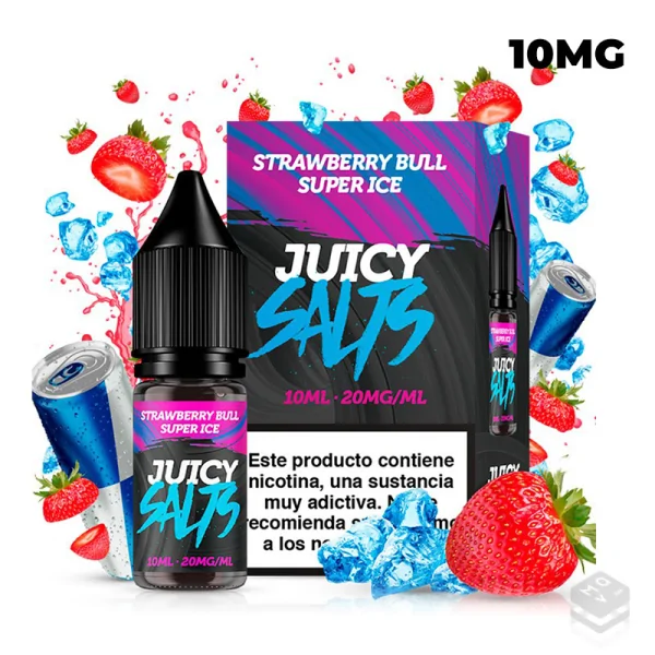 Las sales de nicotina son una forma de nicotina que se presenta de manera más estable, permitiendo una absorción más rápida y suavizando la sensación en la garganta. Strawberry Bull Super Ice de Juicy Salts utiliza sales de nicotina para proporcionar una experiencia de vapeo más parecida al cigarro tradicional, ideal para aquellos que buscan una alternativa suave pero efectiva.