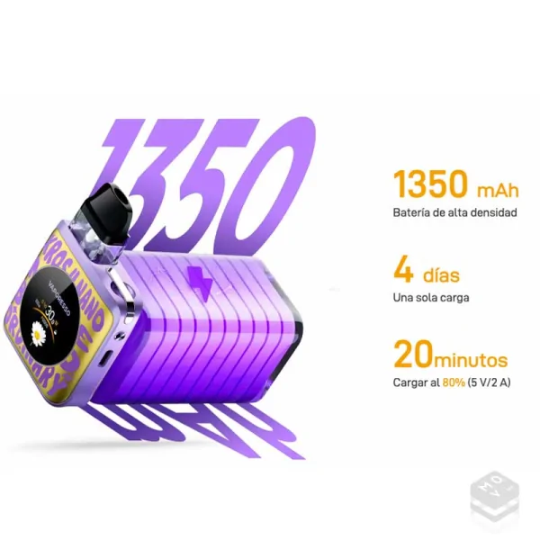 Si estás buscando un dispositivo de vapeo compacto y potente, el Xros 4 Nano de Vaporesso es sin duda una opción ideal. Este dispositivo no solo ofrece una de las baterías de mayor capacidad en toda la serie Xros, con 1350mAh, sino que también incluye tecnología de carga rápida 2A, lo que significa que tendrás el 80% de la carga lista en solo 20 minutos. La duración de la batería es excepcional, pudiendo durar hasta 4 días con una sola carga, lo cual es perfecto para quienes desean un rendimiento consistente sin interrupciones constantes para recargar.