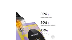 - Tecnología COREX 2.0: Garantiza un sabor más rico, una producción de vapor mejorada y una mayor durabilidad de las cápsulas.